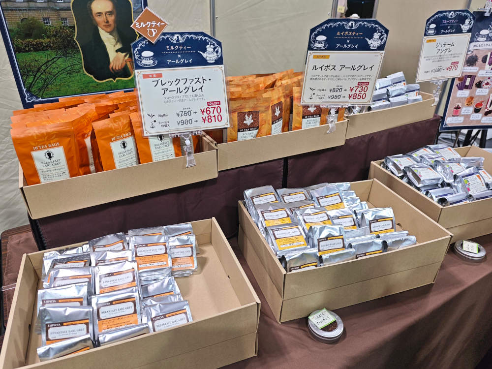 入口から左に沿って、「多彩なアールグレイ」、「クラシックティー」、「緑碧(ルーピー)茶園」。前2つは2026年からの新ブースです。