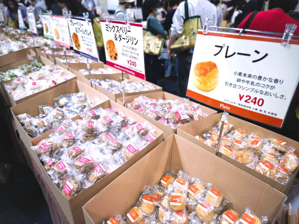 こちらも大人気。スコーン1個240円、6個で1,200円です。私の見たときは13種類ありました。
